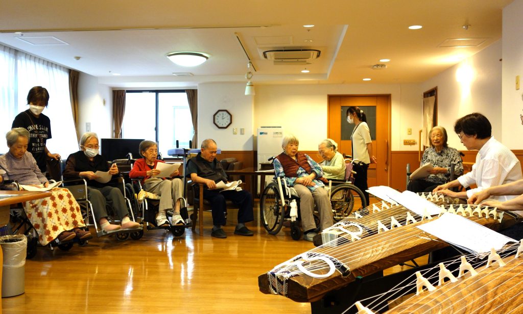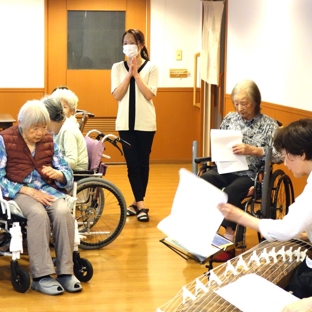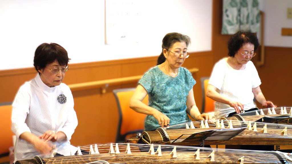 今回の梅音はお琴の演奏会です。お馴染みの曲をたくさん演奏してくださったので、皆さん一緒に歌うことができ、とても楽しいひと時になりました。3名での演奏だったので迫力がありました。
