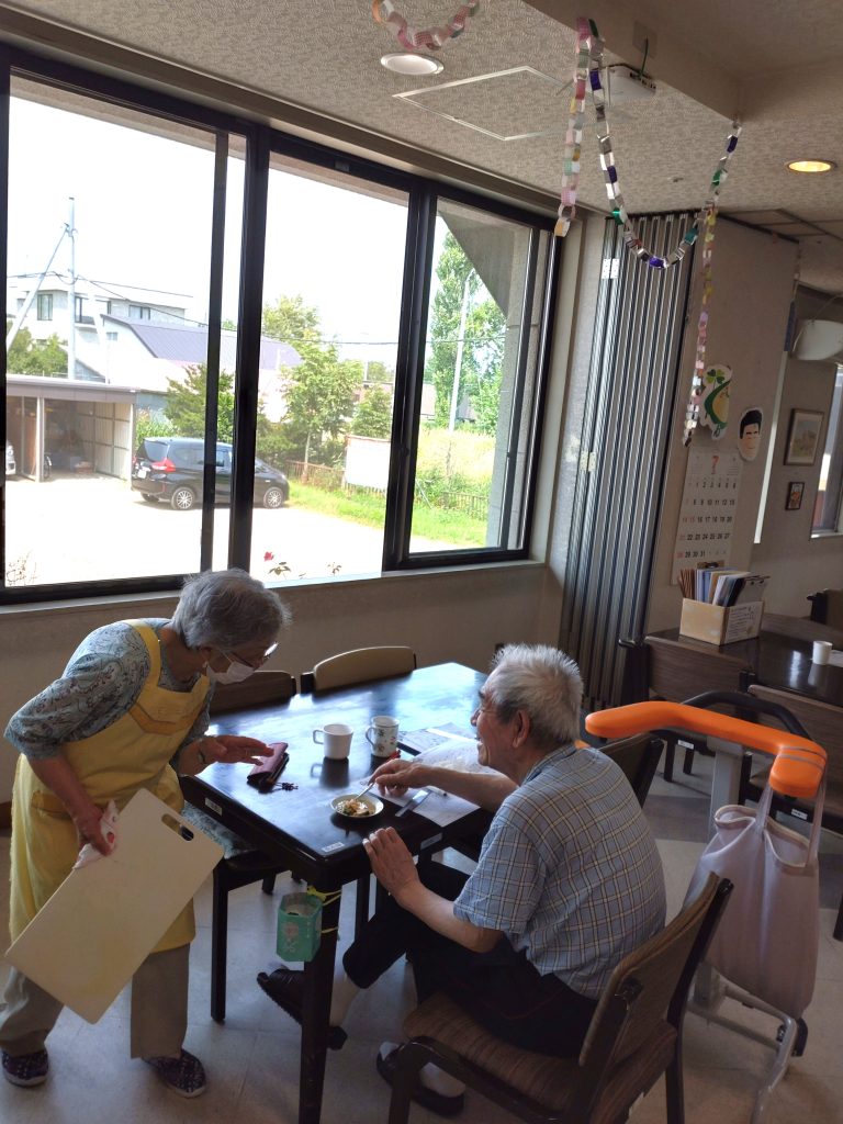 「おいしいかい?」「おいしい!!」 脳トレをしながら涼みに来ていた方にもおすそ分け😋