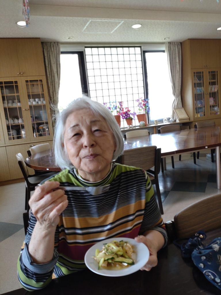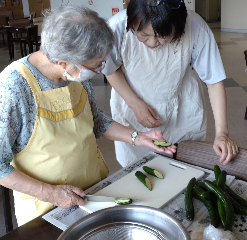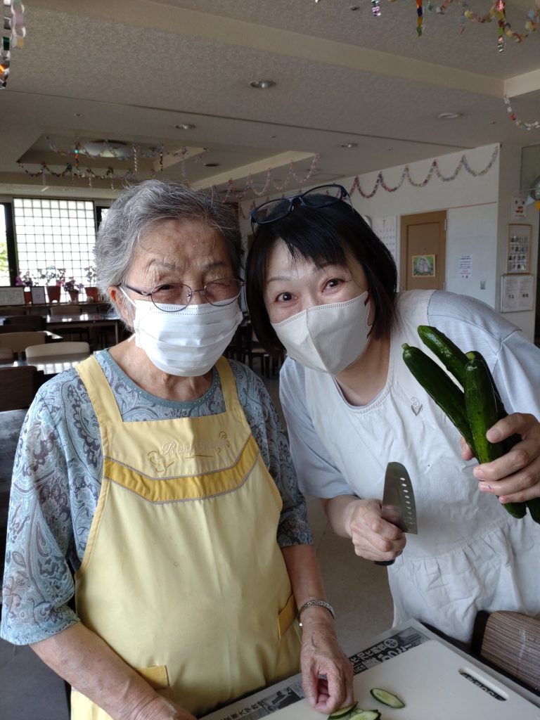ある日、入居者様が手間ひまかけて畑で作った採れたてきゅうりの差し入れがありました。