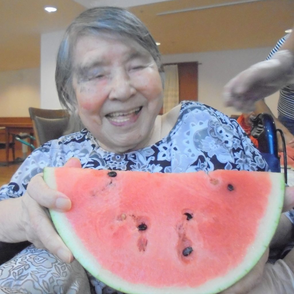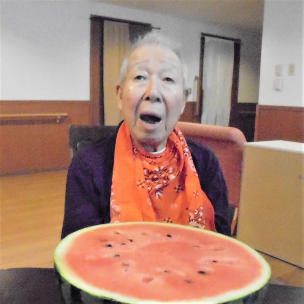 ユニットでスイカを1玉買ってきました。皆さんで分けて美味しくいただきました。