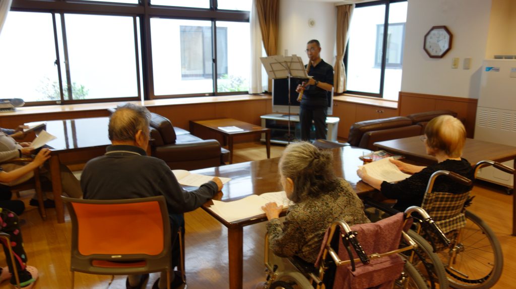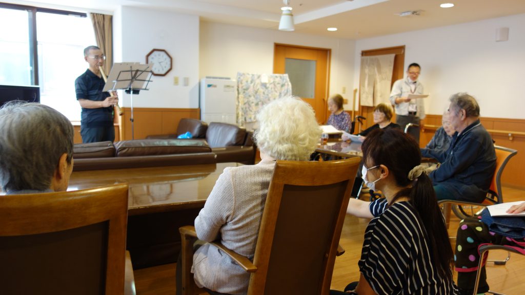 久しぶりにユニットでも梅音が開催されました。尺八の演奏会です。演者の方は、どこかで見たことがあるような・・・夕方、事務室のカウンターに座っている方のようです・・・