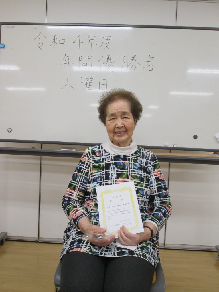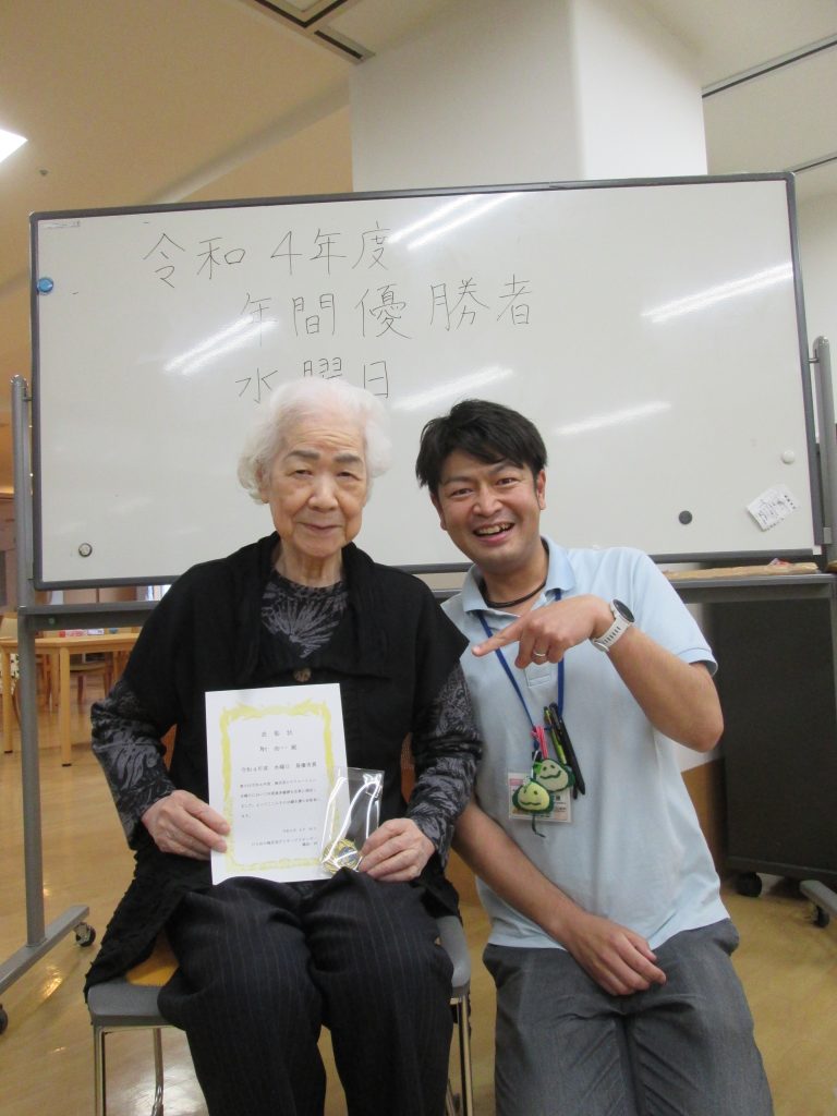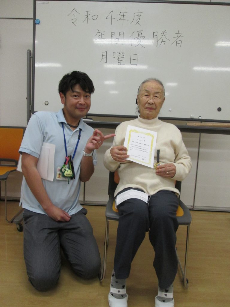 優勝の秘訣をお伺いすると「元気でデイサービスに通うことです!」との事です。
