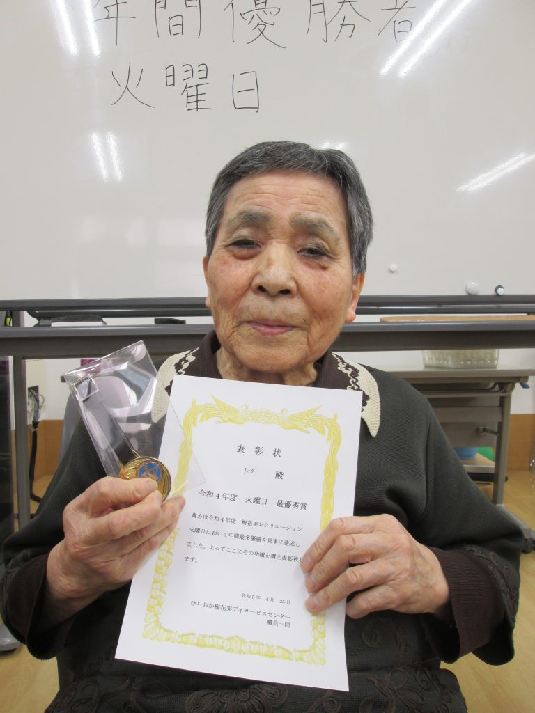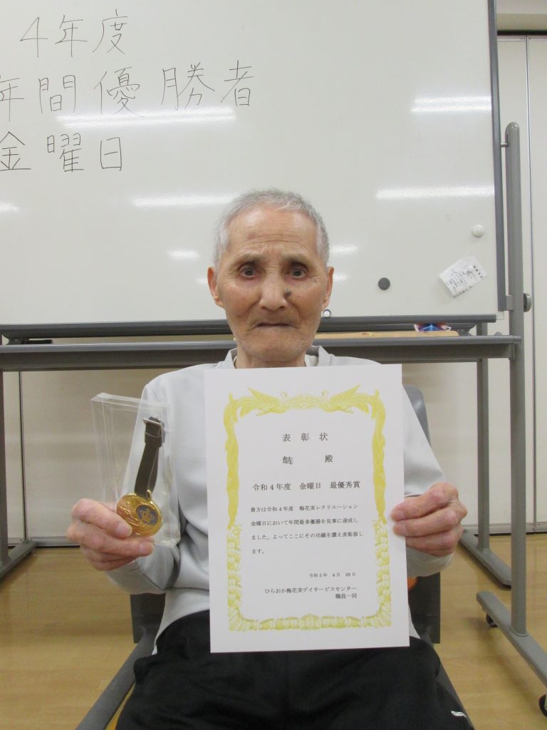 ひらおか梅花実デイサービスセンター 令和4年度年間レクリエーション表彰式