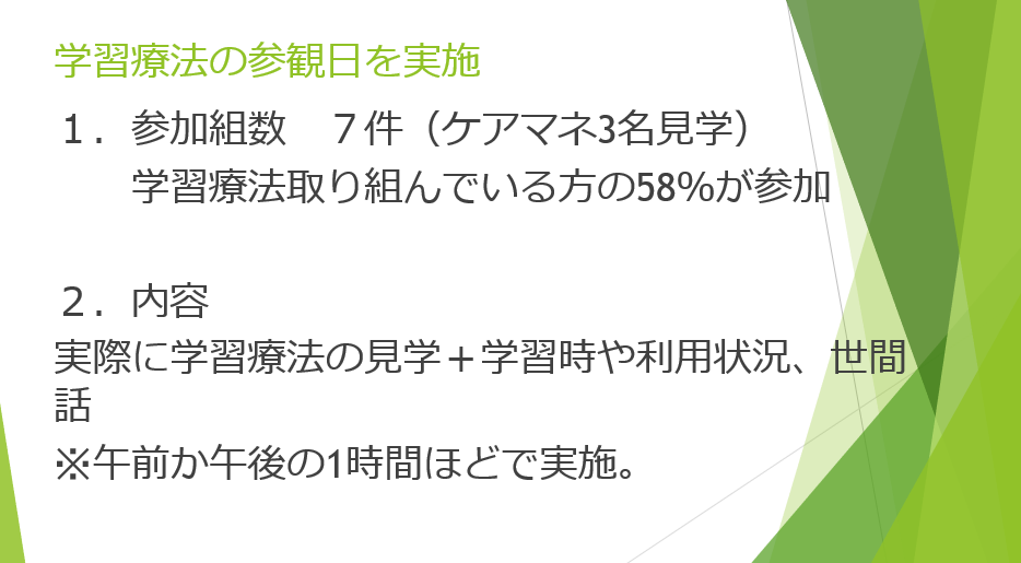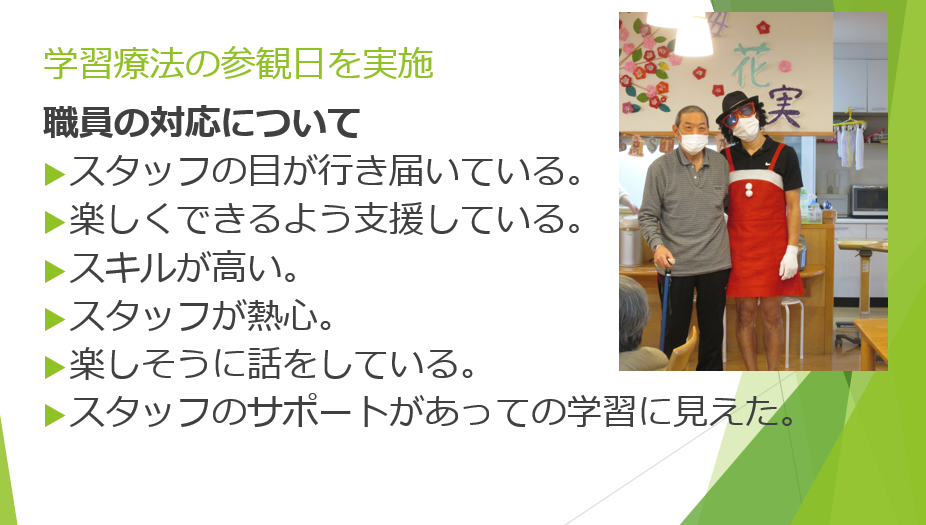 合計で7組のご家族様と3組のケアマネジャー様に来所していただき、開催しました。あるご家族は東京から駆けつけてくださるほど、お母様の頑張りを気にされていたそうです。