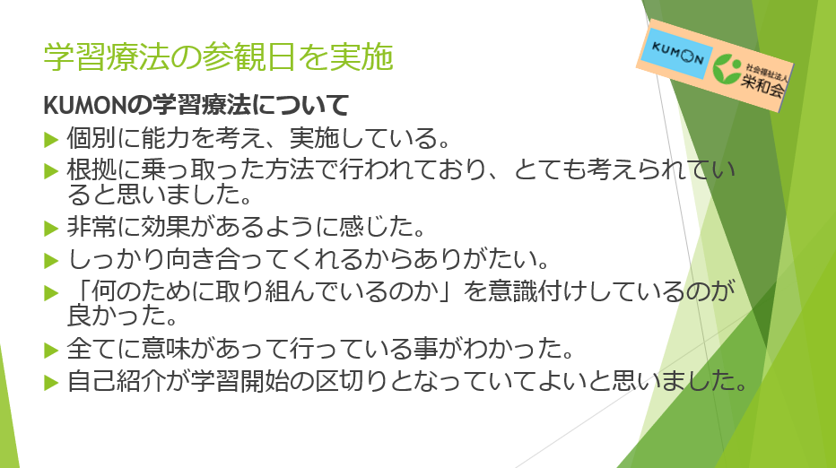 先日チラッとお伝えした「学習療法の参観日」と先日開催された「北介道学習療法シンポジウム」について今回はお知らせします。
