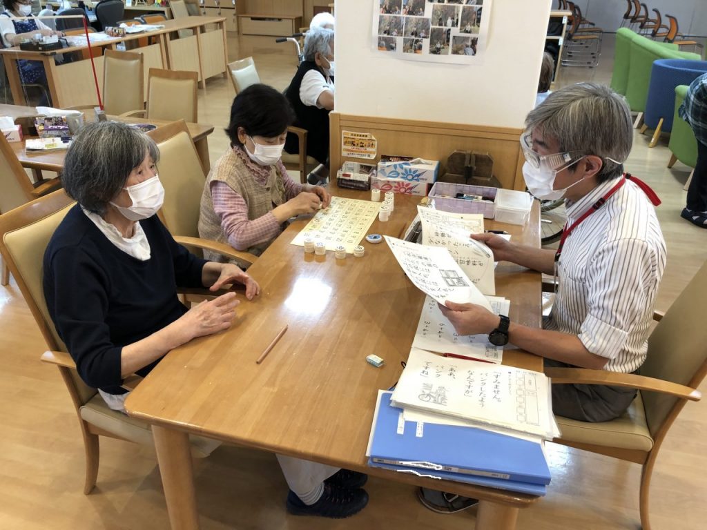 学習療法の様子です。今日もやる気満々で取り組まれておりました。力強く、ご自身が体験された話なども語っていただけております。
