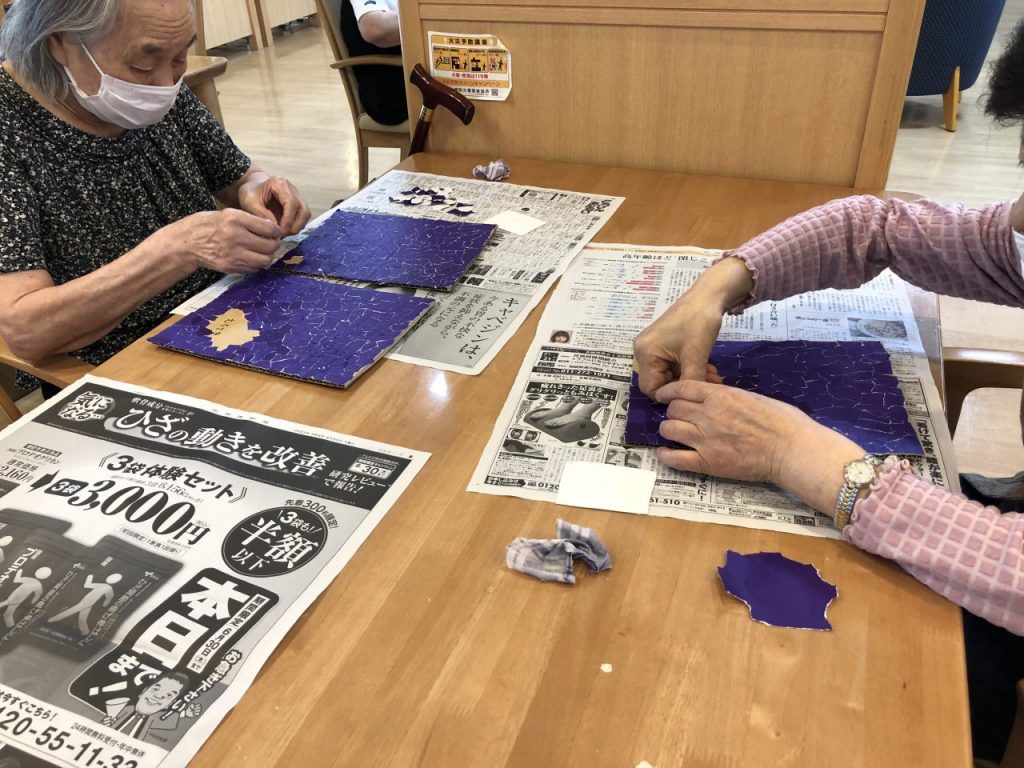 こちらは壁面装飾の貼り絵です。最終的にパズルを組み立てるように作品が完成します。どのような作品になるか楽しみですね。
