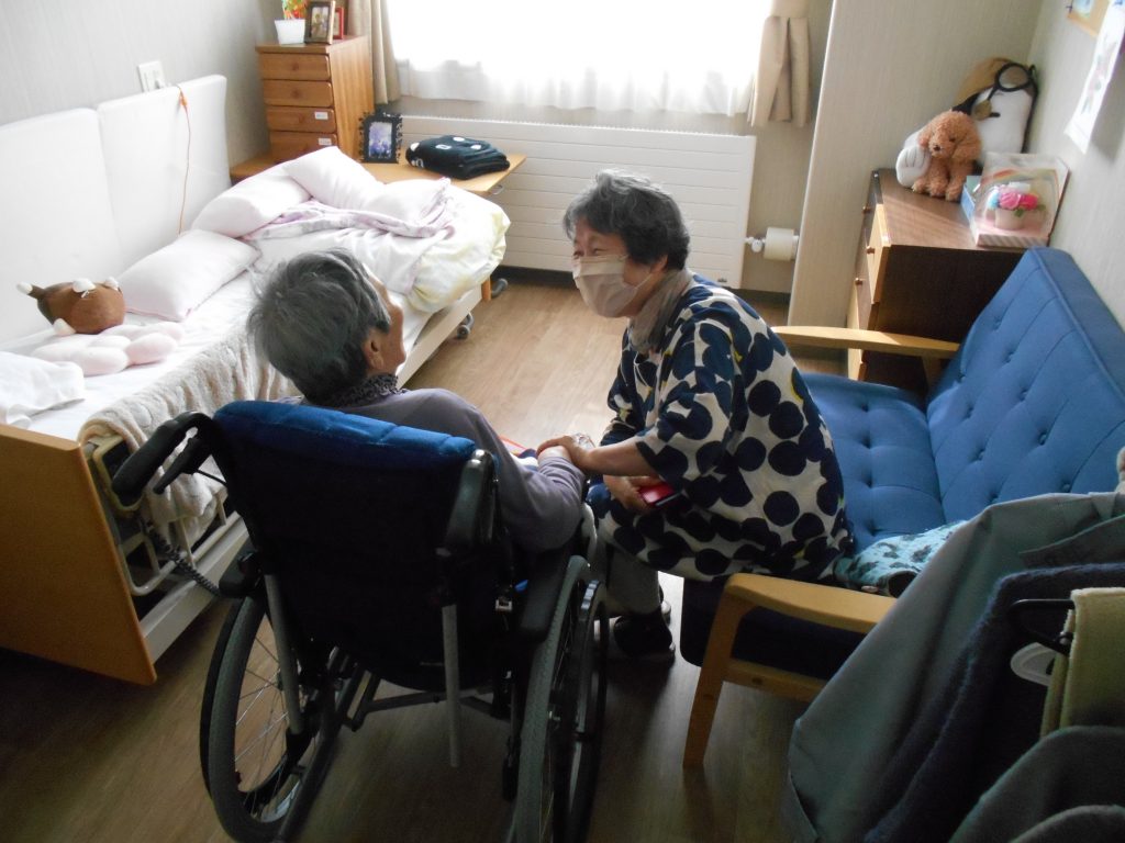 令和6年5月7日より、面会ルールが以前に比べ、更に緩和されました。お部屋では家族と楽しい時間を過ごしていただいております。