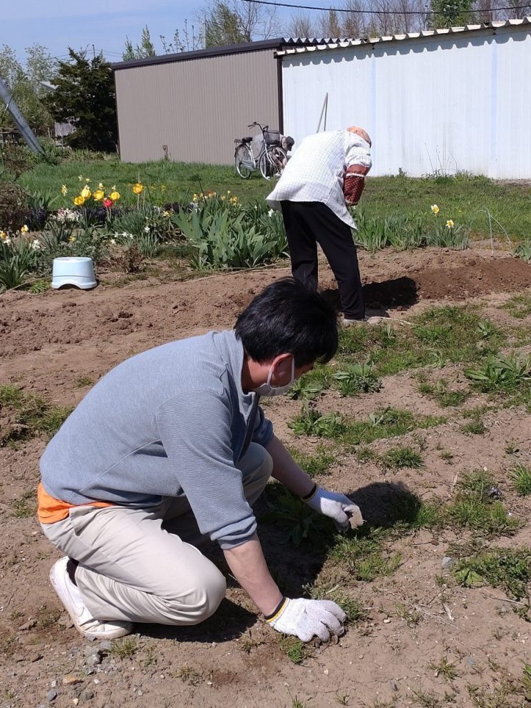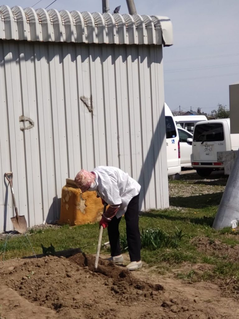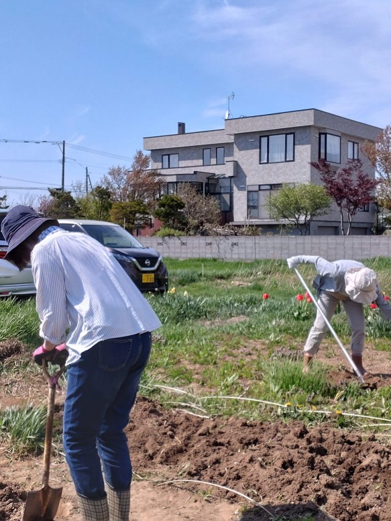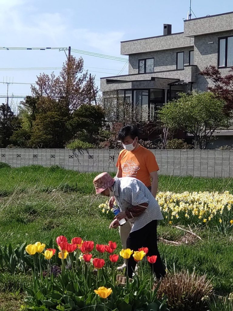 綺麗に咲いたチュ-リップを眺めながらひとやすみ