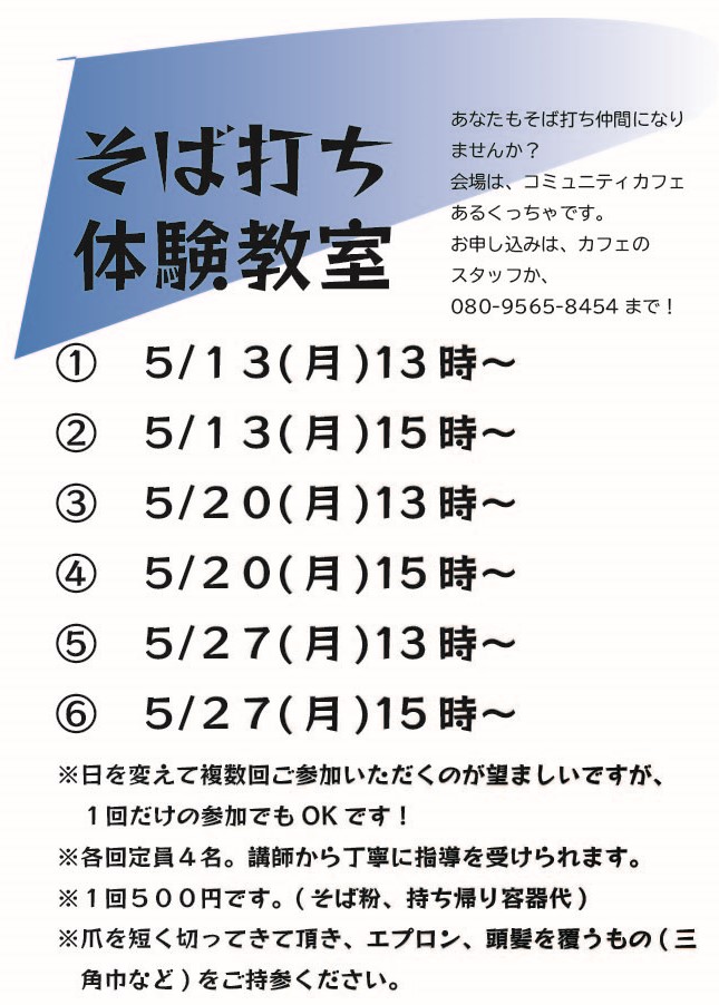 あるくっちゃでは、昨年に引き続き「年越しそばを自分で打とう!」ということで、「蕎麦打ち体験教室」を開催しています! 自分で打ったお蕎…