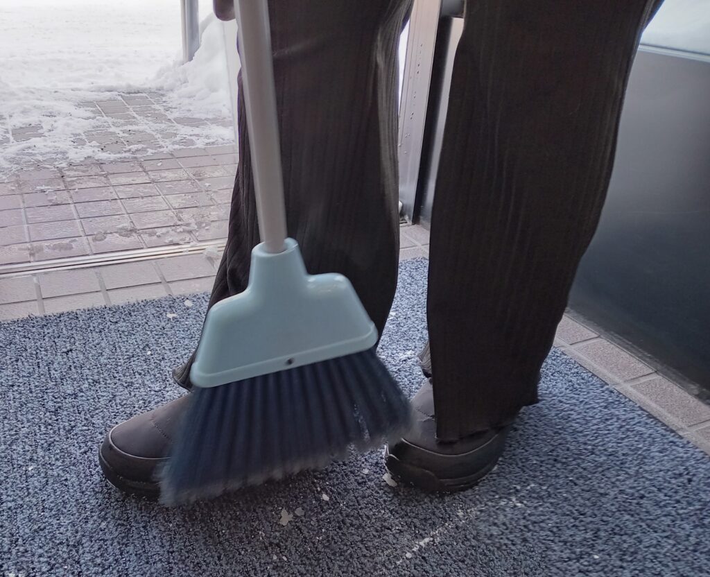 「そうそれ。ちょっと、こっちによこして」と仰り、その方は手慣れた様子で、自分の靴についた雪をほうきでほろい始めたのです!