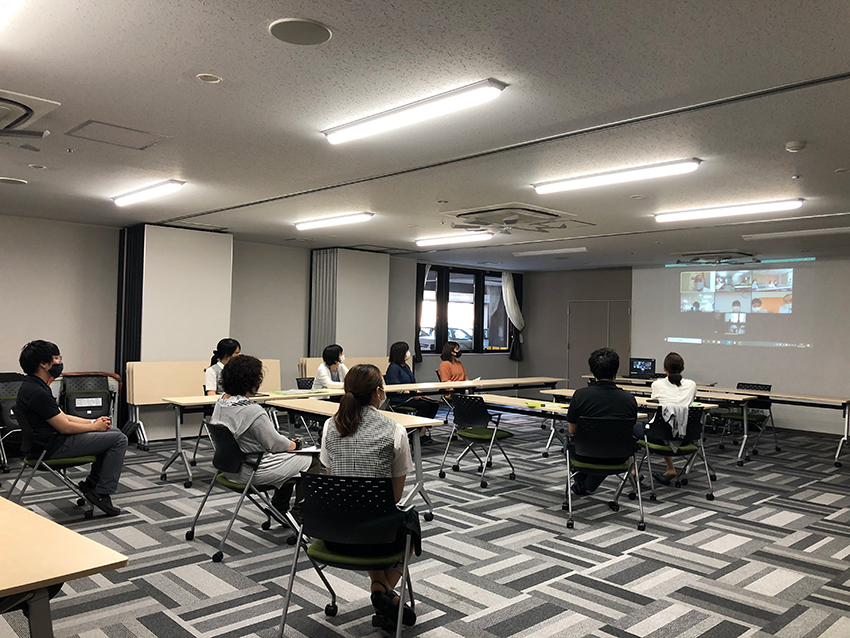 コロナ禍においては、それぞれの拠点からソーシャルディスタンスと換気をしながら参加しています。