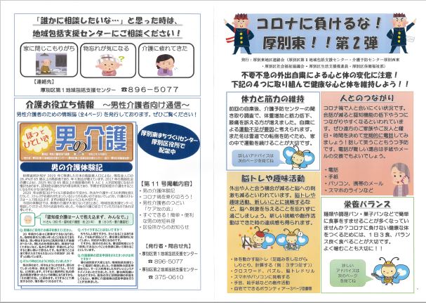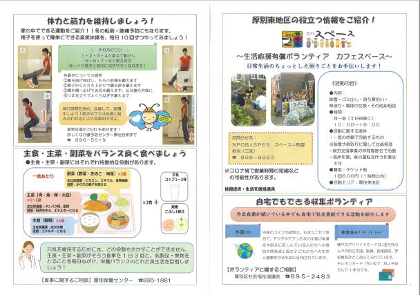 このたび、コロナ禍でも厚別東地区の皆さんに元気に過ごしていただけるように、情報提供を目的としたパンフレットの第2弾を作成しました。厚別東地区以外の方でもお役に立つ情報と思いますので、ぜひご覧ください。