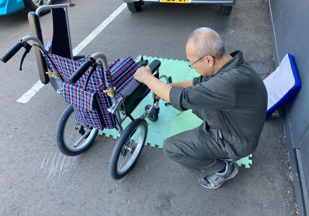 コロナ禍以前にも来ていただいた車いすの点検・整備・清掃のボランティアの方にご依頼し、ご入居者が使用している車いすの点検・整備を行っていただきました。ブレーキ調整やボランティアの方のご厚意で部品交換なども行っていただき大変助かりました。