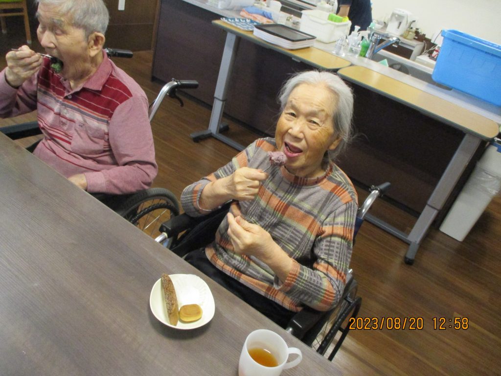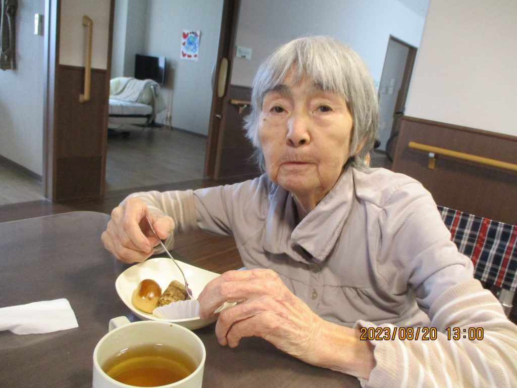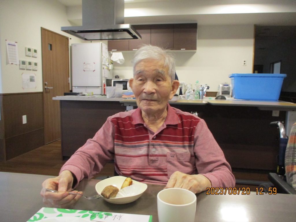 2023.08.24 特別養護老人ホーム あつべつ南5丁目 あつべつ南5丁目 「季節のお菓子を食べよう」 うぐいすユニットでおやつの時間に、おはぎ等のお菓子を入居者の皆様に召し上がっていただきました。 「おいしい!」とお話されており、会話も弾み笑顔が見られていました。 あつべつ南5丁目 係長グンジ いつも元気いっぱいムードメーカーです! 地元では消防団として活躍しています。炎のように熱い心は燃え上がりすぎる傾向があるので、たまには水で冷やしクールに装うオトコです。 ☆まちかどよろず相談会を実施します☆ 前の記事 やすらぎ・栄和荘デイサービス夏祭り 2日目 次の記事