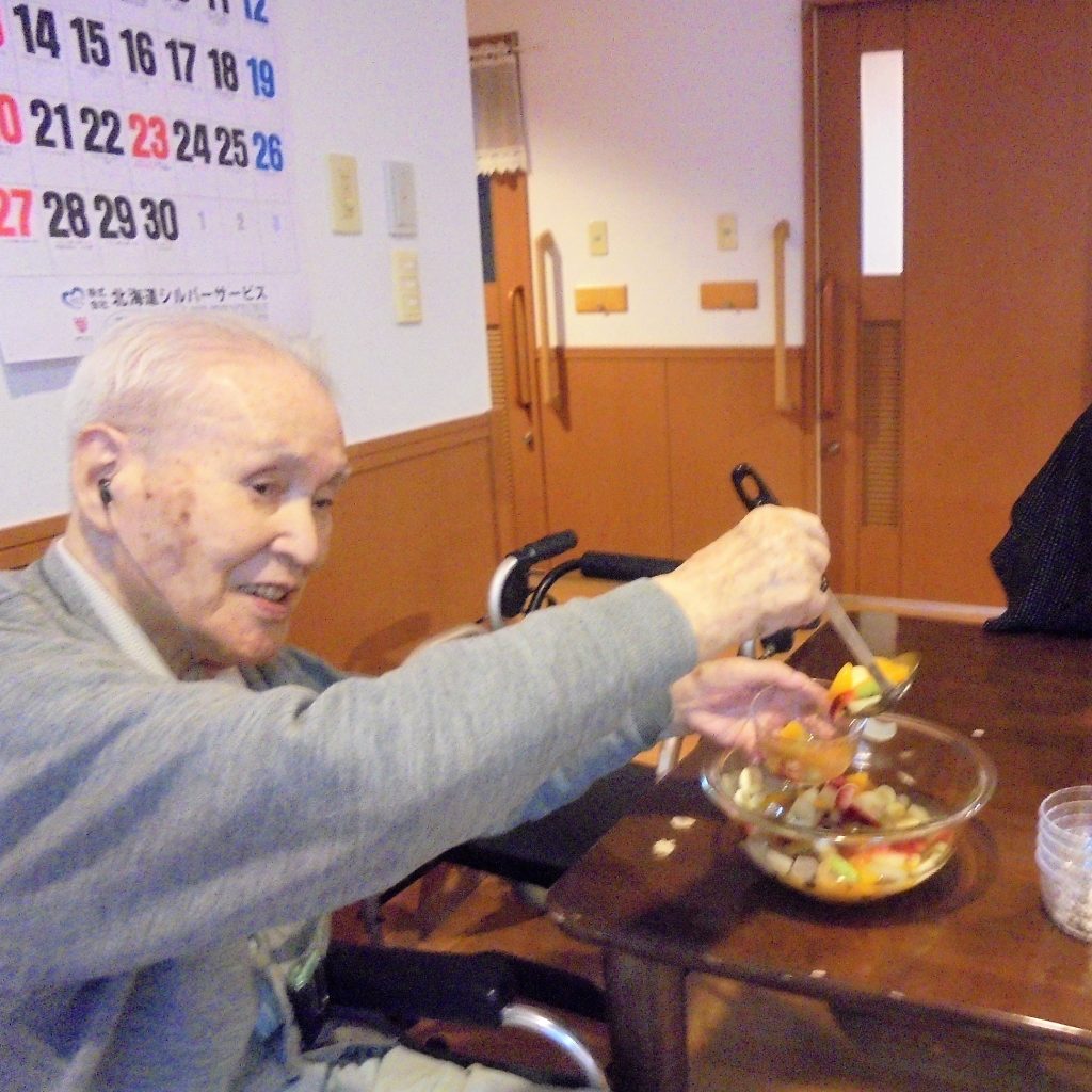 ユニットでフルーツポンチを作りました。ビタミンをしっかり摂って、健康に過ごしましょう!