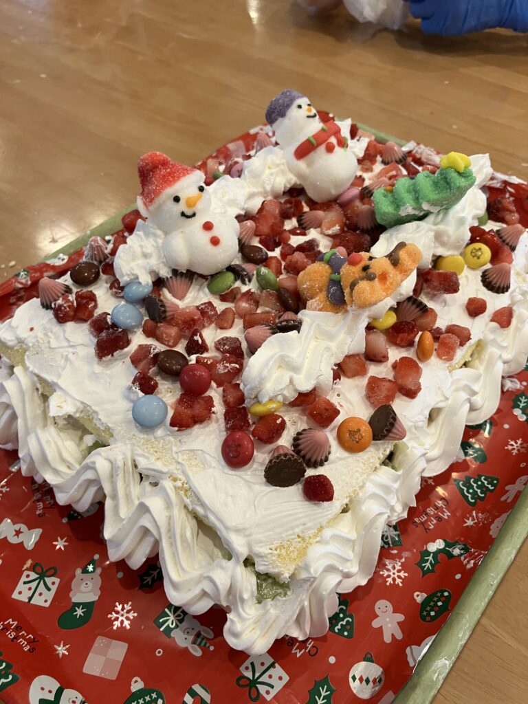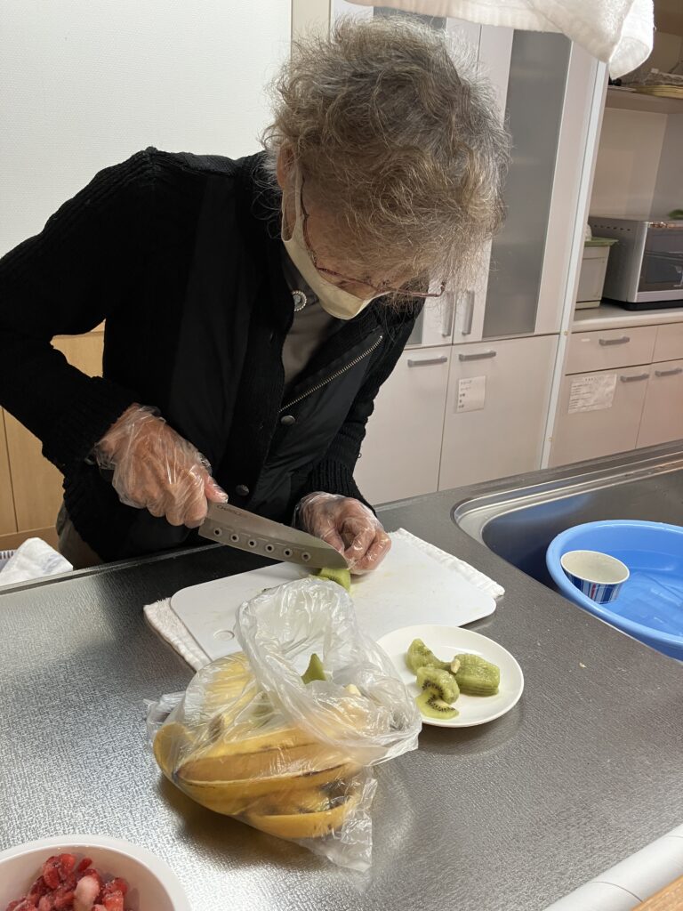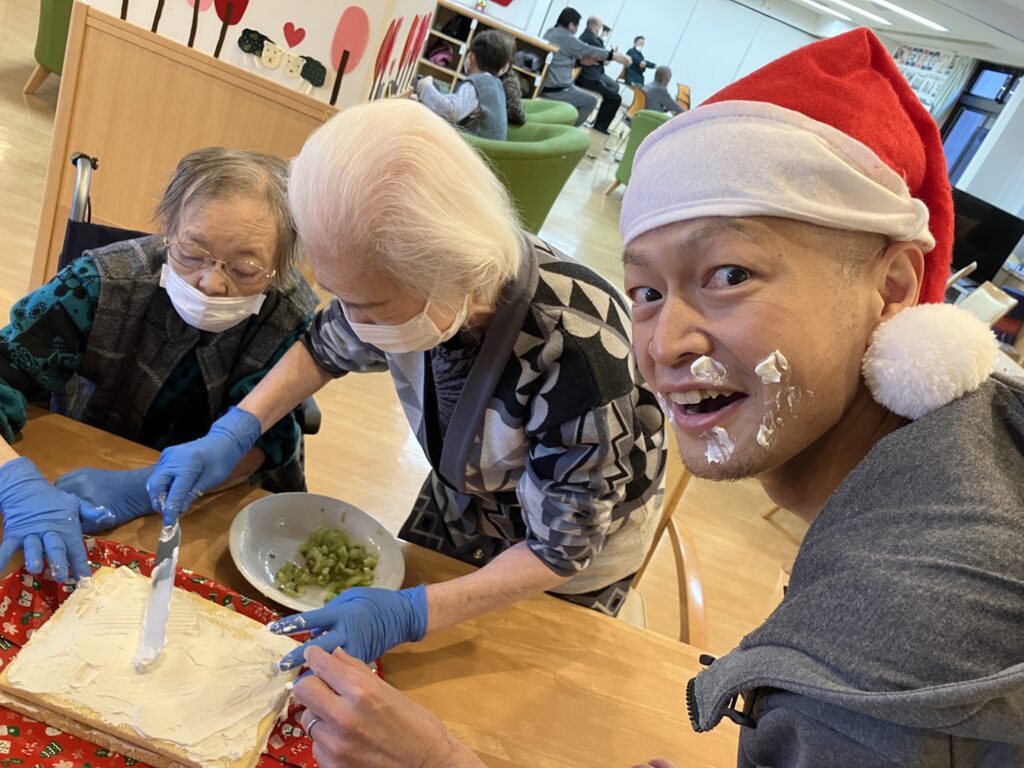 「お店で買ったら1万円はするな~」と利用者の方も言っていました。すごいボリューム。昼食で使うはずであったフルーツもケーキに盛り付けるなど、うまく工面しました。物価高騰のなか、コスパ最高です。