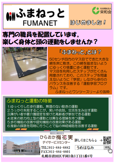そして本日からふまねっとを再開しました。30分程、楽しく身体を動かすことができました。「ふまねっと」「学習療法」の2馬力で認知症へのアプローチを行っています。