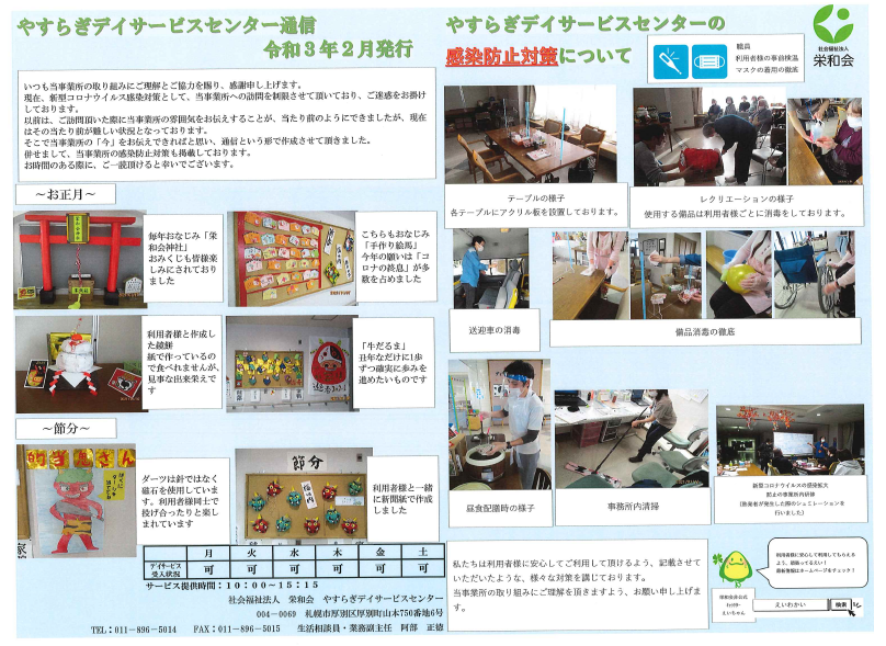 この度、やすらぎデイサービスセンター通信2月号が発行となりました。
