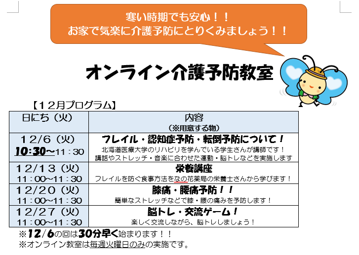 スマホやパソコン、タブレットをお持ちの方でご興味のある方はお気軽に、介護予防センター厚別西東(℡:896ー5019)までご連絡ください。