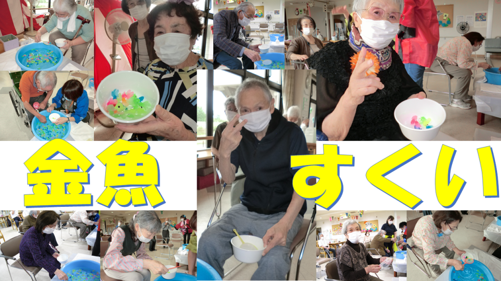 金魚すくいは、おもちゃの金魚でしたが、皆さん真剣そのものです。