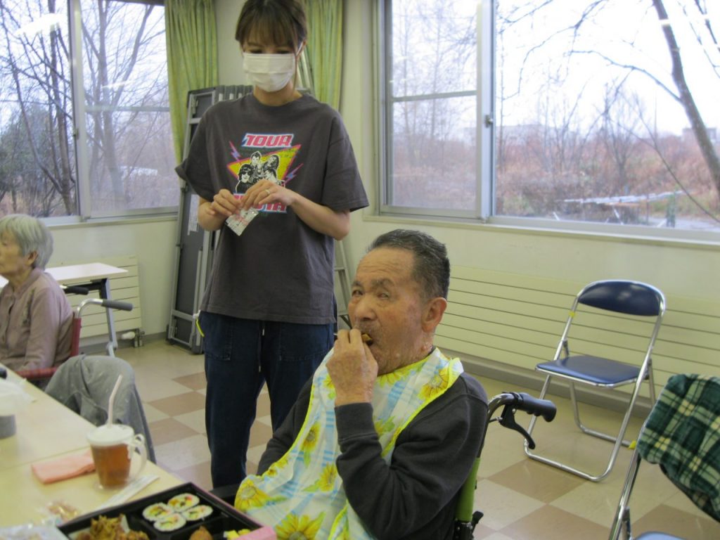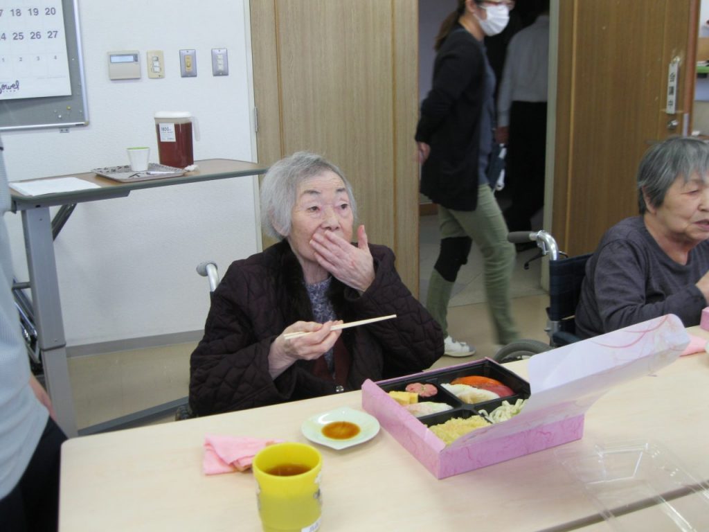 令和3年11月22日(月)厚別栄和荘こもれび、出前行事(お寿司)