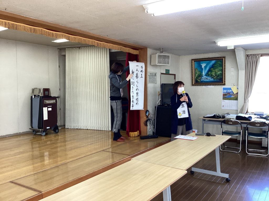 (一人暮らしの高齢者、お父さん、お母さん、隣人は高杉会の方々が熱演してくれました)