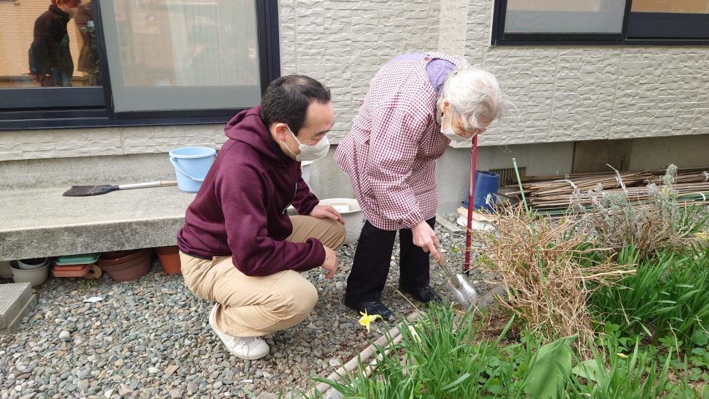 H様(なんと100歳代!!!)は、新型コロナの影響で外に出る機会がなかなか作れないことで身体が弱ってきており、趣味の花壇の世話に不安を抱えていらっしゃいました。