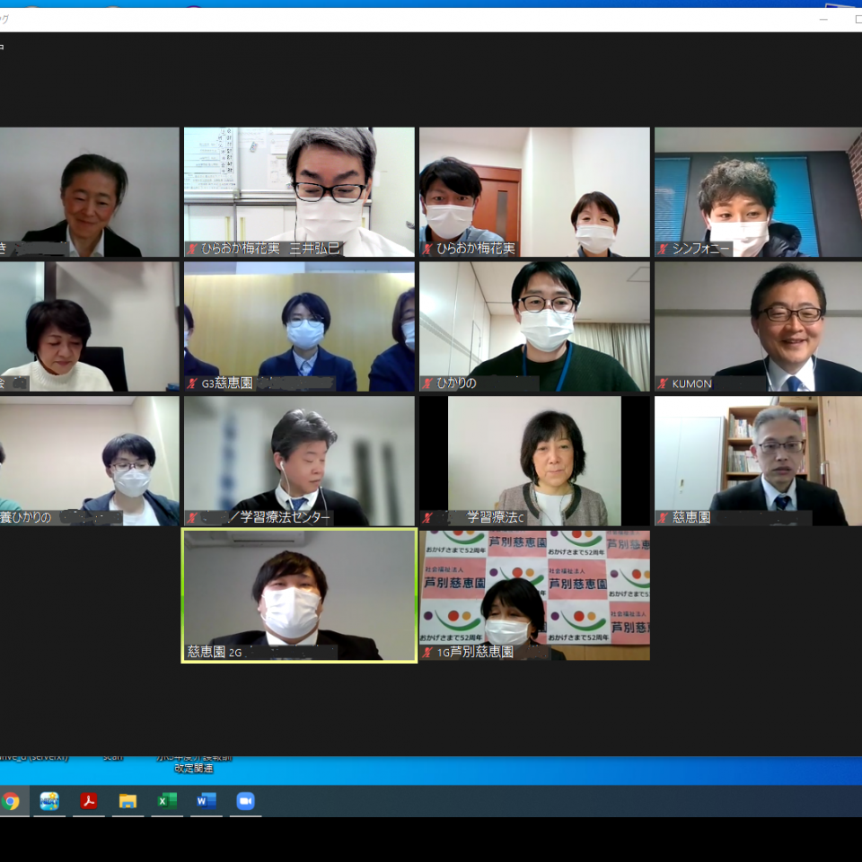 1月26日に学習療法を実践している道内の6施設が集まり、シンポジウムを開催しました。企画当初は新型コロナウイルスの感染状況は落ち着いており、岩見沢に集結し対面で実施する予定でしたが、現在の新型コロナウイルス感染状況を鑑み、文明の利器である“ZOOM”での開催となりました。