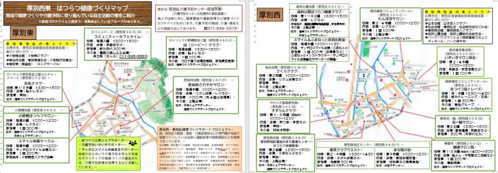 身近な場所での活動を厚別西東はつらつ健康づくりマップにてご紹介しております。