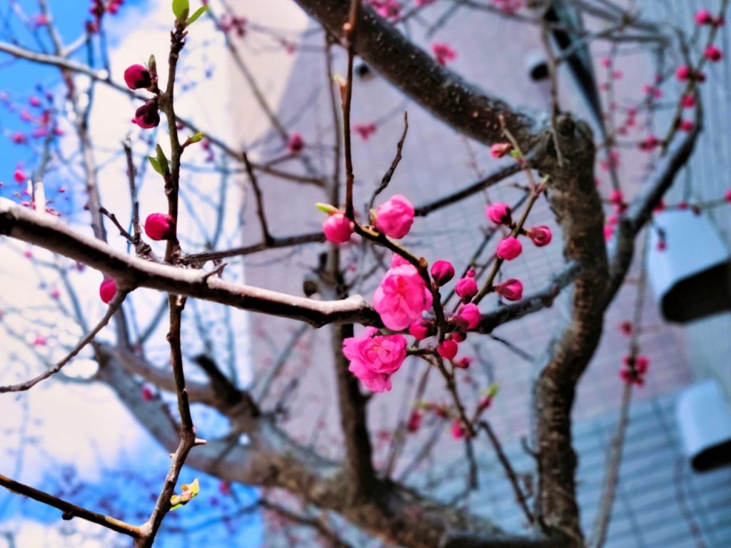 梅花実の梅の花が、少しずつ咲き始めました。白梅と紅梅がありますが、例年紅梅の方が元気よく咲き始めます。
