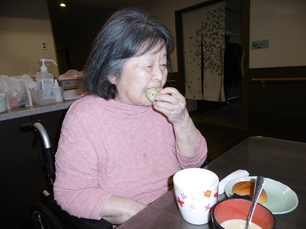 先日、はやぶさユニットで行われたレクリエーションのご様子です。ご利用者より「普段あまり食べる事がないパンが食べたい」との希望が聞かれた為、企画・実施しました。