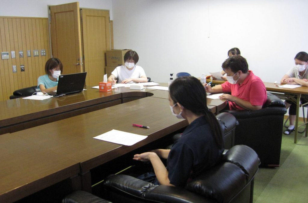 事例をもとにご利用者様に対する言葉遣い、気持ちを尊重した声掛けについて日ごろのケアを振り返り、皆で話し合いました。