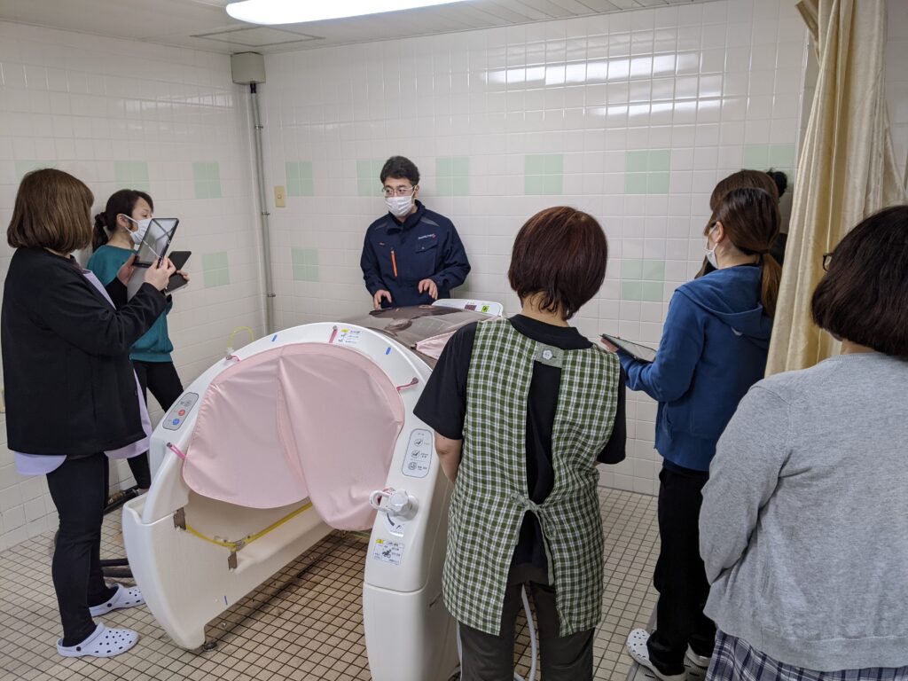 入浴は、個々の身体状態に合わせて提供しますが、体力に自信が無い・負担が心配‥の方には良い入浴方法の一つだと考えています。