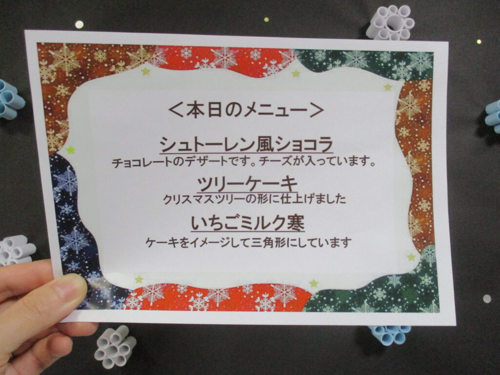 季節のデザートを楽しむスイーツデイ、今回のテーマはもちろん「クリスマス」!