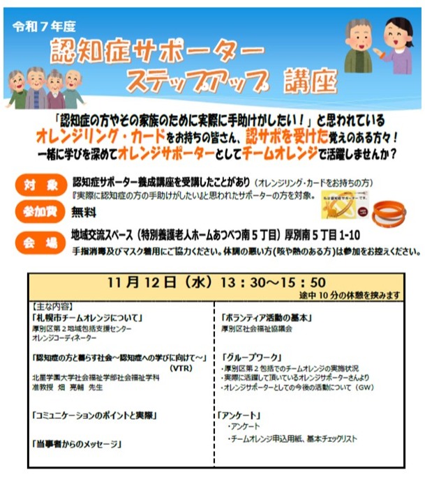 🎓認知症サポーターステップアップ講座(11/12開催)