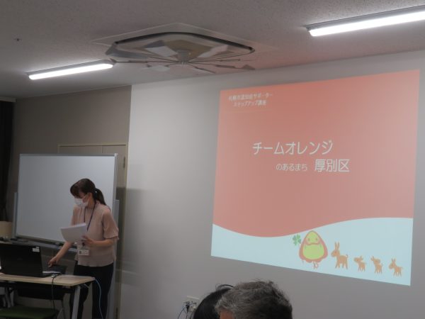 講座では、1日目にチームオレンジについての説明、「認知症の方と暮らす社会」をテーマに北星学園大学社畑准教授や当事者からのメッセージとして介護の体験談を『認知症の人と家族の会』の方からもご講義頂きました。