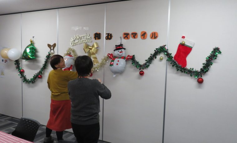 クリスマス会を実施する前にオレンジサポーターの方々と一緒に会場の飾りつけから実施致しました。