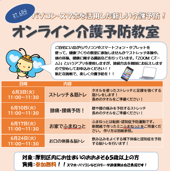 オンライン介護予防教室 令和7年6月分プログラムのお知らせ!!