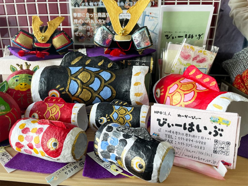 鯉のぼりと兜が展示されました。すっごく可愛いですね。