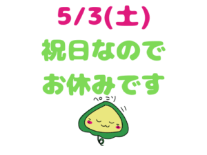5/3(祝)はお休みです