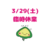 3/20はお休みです