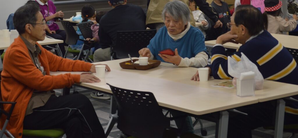 初対面なのに、長時間に渡って話し込む地域の方達も…