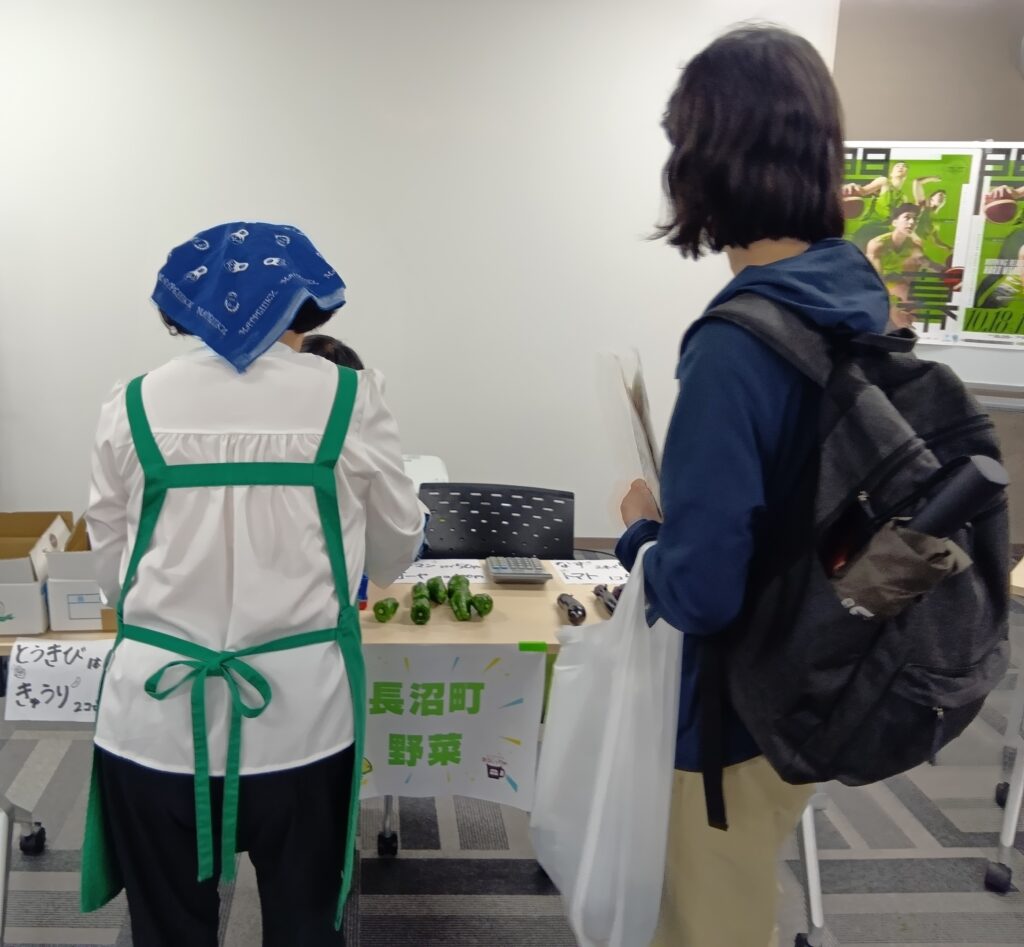 自分の結果を見て、学生さんから説明を受けて、もっと野菜を食べよっかな!という気持ちになった時に、隣のブースには、長沼町の農家さんから分けて頂いた、おトクな規格外野菜の販売コーナーが!