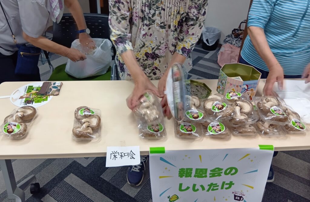 その隣には、報恩会さんのしいたけ販売も!
