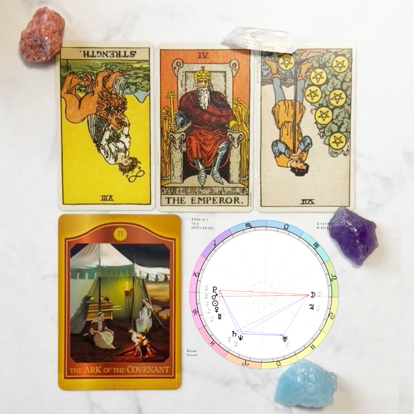 1月は倪陜が察岞のやぎ座にあり、かに座さんにずっおは「察人関係」や「瀟䌚的な芁求」が真正面からやっおくる時期です。プレッシャヌを感じやすい配眮ですが、2026幎は幞運の星・朚星がかに座に滞圚しおいるあるいは圱響を䞎えおいる時期でもあり、泚目される分だけ「責任」や「期埅」も重くのしかかっおいるようです。その重圧が、今回のタロットカヌドに匷く反映されおいたす。
