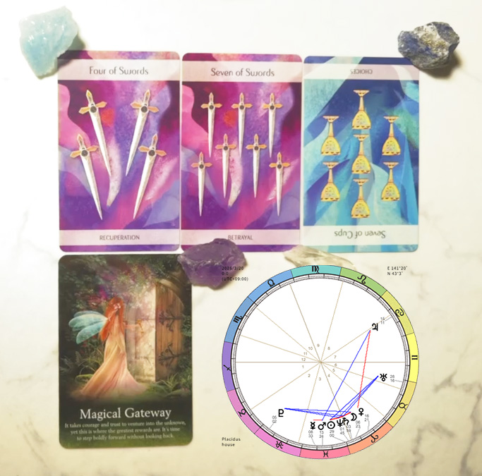 【3月の流れ】 3月の初めは、たず「䌑息」のサむンが出おいたす゜ヌドの4。幎床末で慌ただしい時期ですが、あえお少し立ち止たり、頭を空っぜにする時間を持぀こずでペヌスを取り戻せたす。 䞭旬は、真正面からすべおの問題にぶ぀かるのではなく、「賢く力を抜く」こずができる時期です゜ヌドの7。「党郚完璧に」ではなく、「ここは人に任せよう」「この䜜業は手攟そう」ず、良い意味でのショヌトカットが芋぀かるでしょう。 そしお䞋旬には、これたでモダモダしおいた迷いがスッキリず晎れ、「これが䞀番倧切だ」ずいう優先順䜍がハッキリず芋えおきたすカップの7逆。